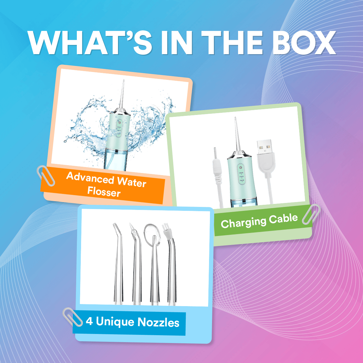 4x Nozzle Heads (Cleaning Nozzle, Pressure Nozzle, Orthodontic Nozzle, Tongue Nozzle)
