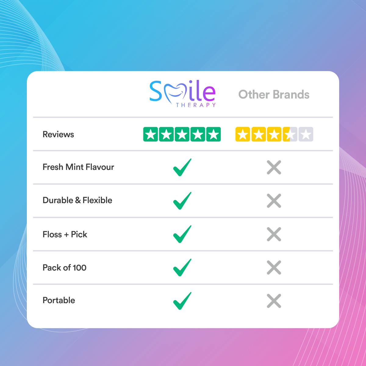 ✓ Mint flavoured to eradicate any odd string flavours.