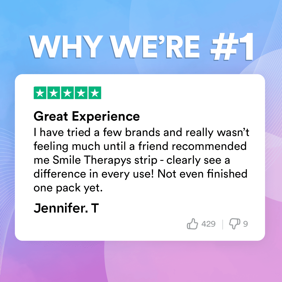Reach a radiant smile from within with Smile Therapy’s Teeth Whitening Strips! Our strips penetrate beneath tooth enamel to lift teeth staining from within, giving you a brighter, whiter smile in as little as one full treatment.