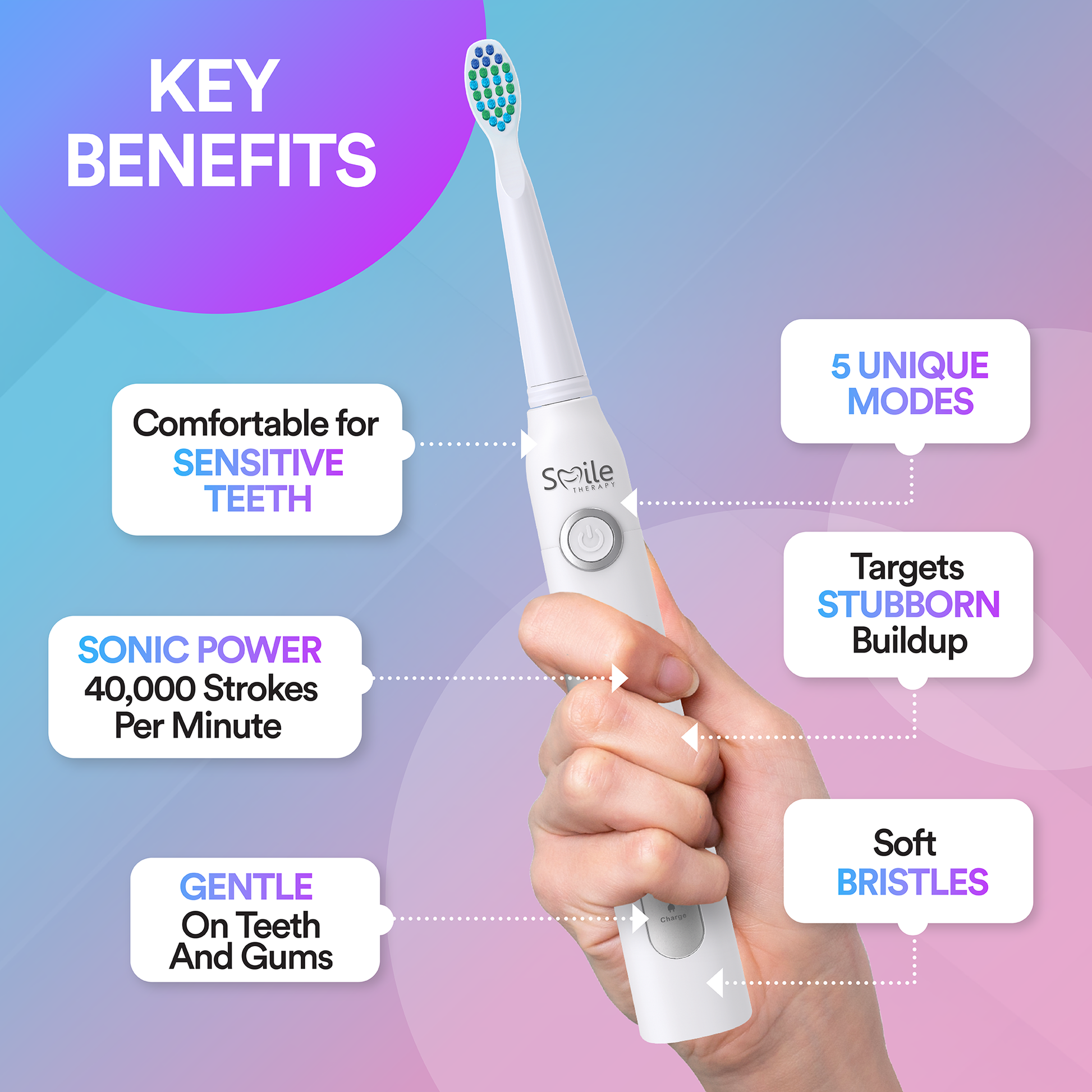 ✓ Sonic technology reaches where manual brushes can’t